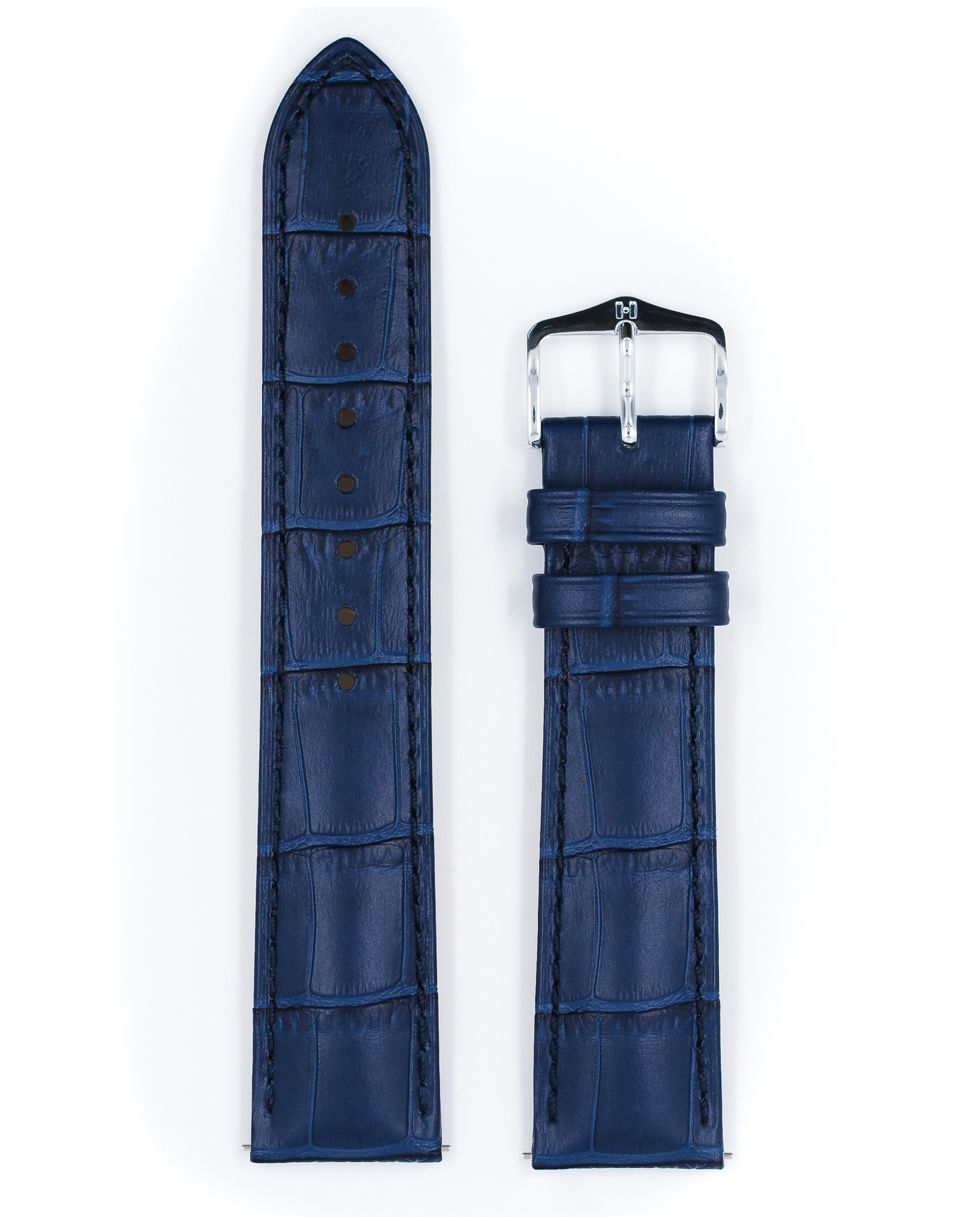 Ремешок Hirsch 22/20, натуральная кожа с тиснением под аллигатора, синий, коллекция Duke