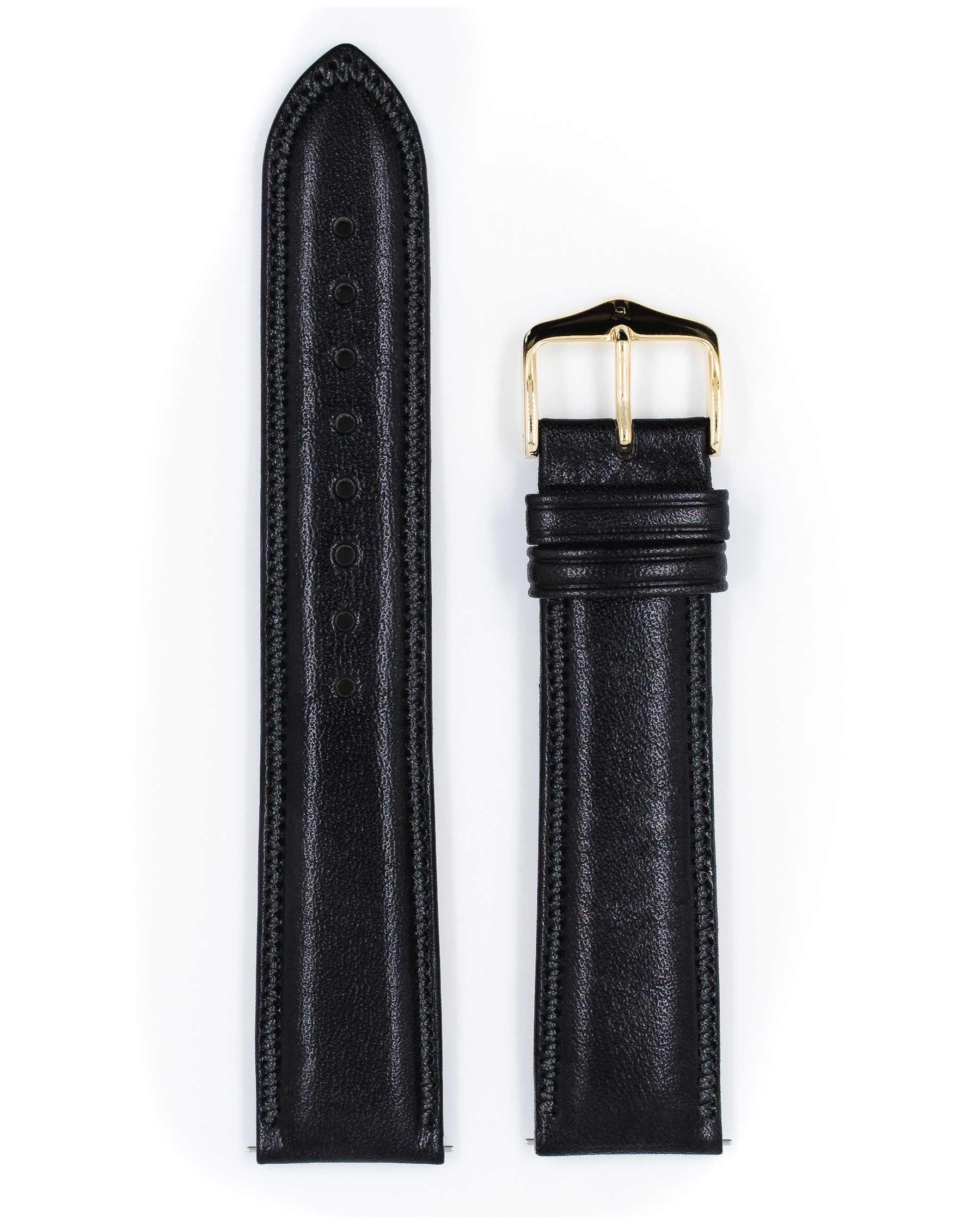 Ремешок Hirsch 19/18, натуральная кожа, чёрный, длина 118/78, коллекция Ascot