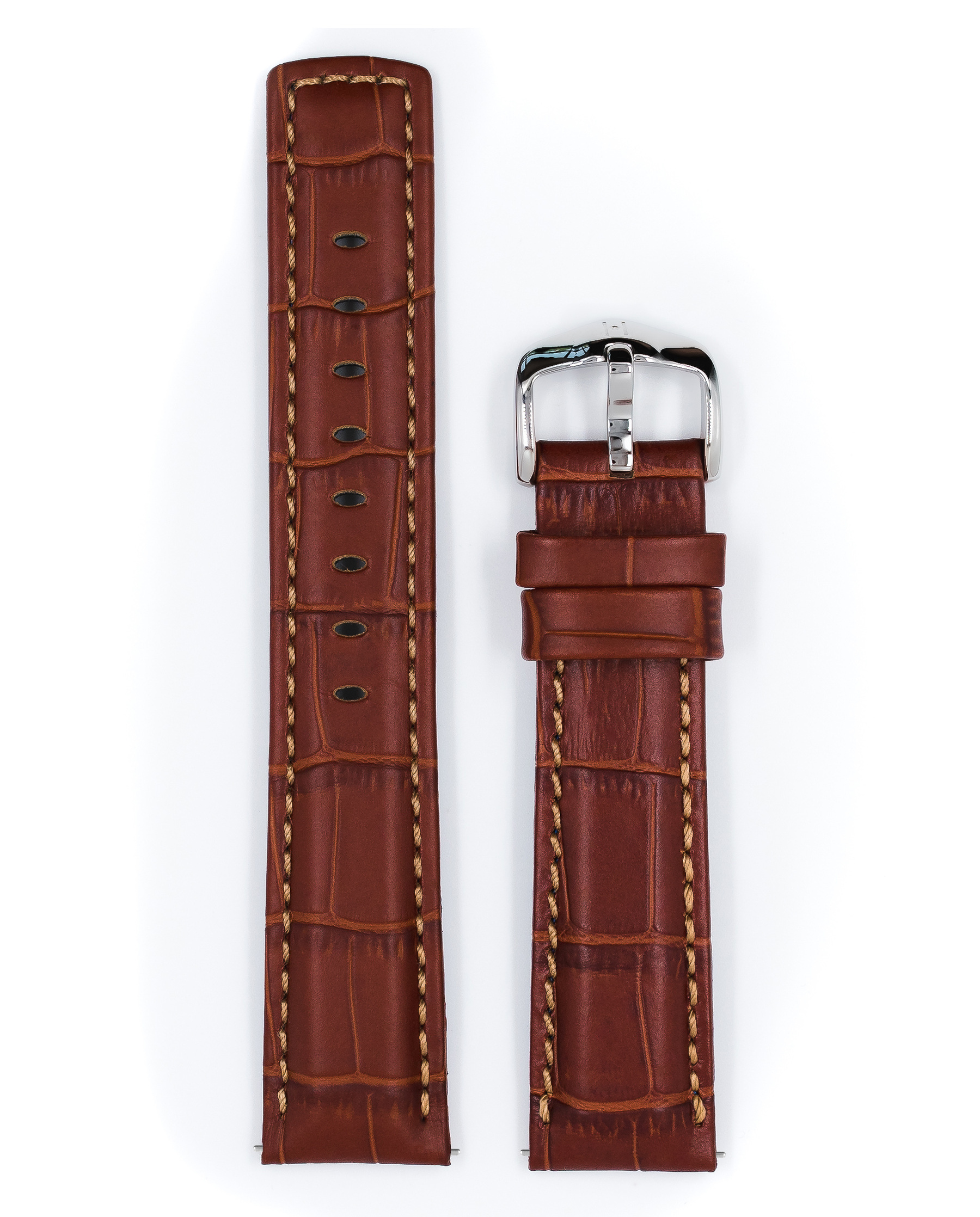 Ремешок Hirsch 24/20, натуральная кожа с тиснением под аллигатора, коричневый, контрастная прострочка, подкладочная кожа HIRSCH Diving Glove, длина 118/78, коллекция Grand Duke
