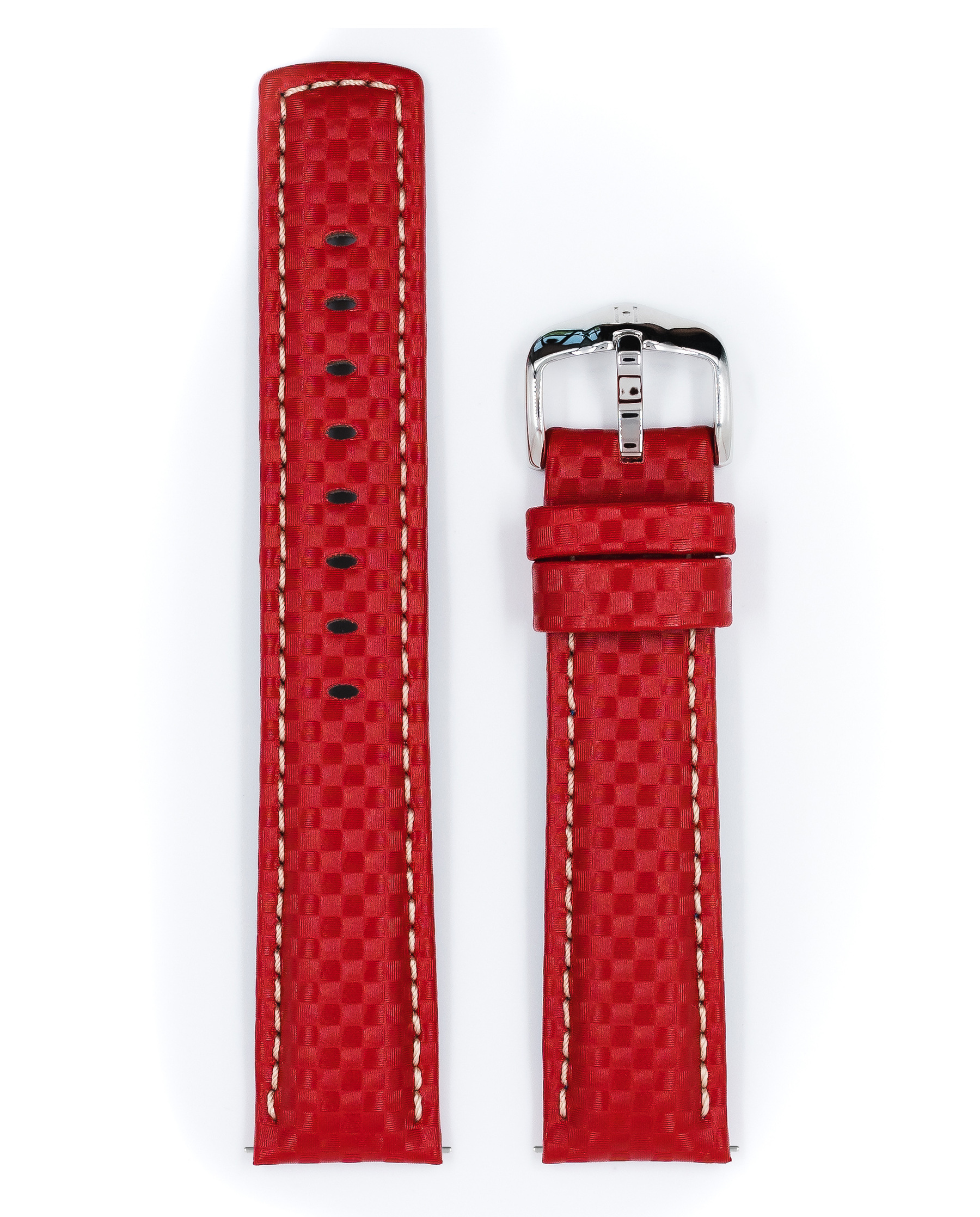 Ремешок Hirsch 22/20, крепкая и долговечная хай-тек кожа с четко детализированной карбоновой текстурой, красный, белая прострочка, подкладочная кожа HIRSCH Rubberlike, длина 118/78, 100m Water-Resistant, коллекция Carbon