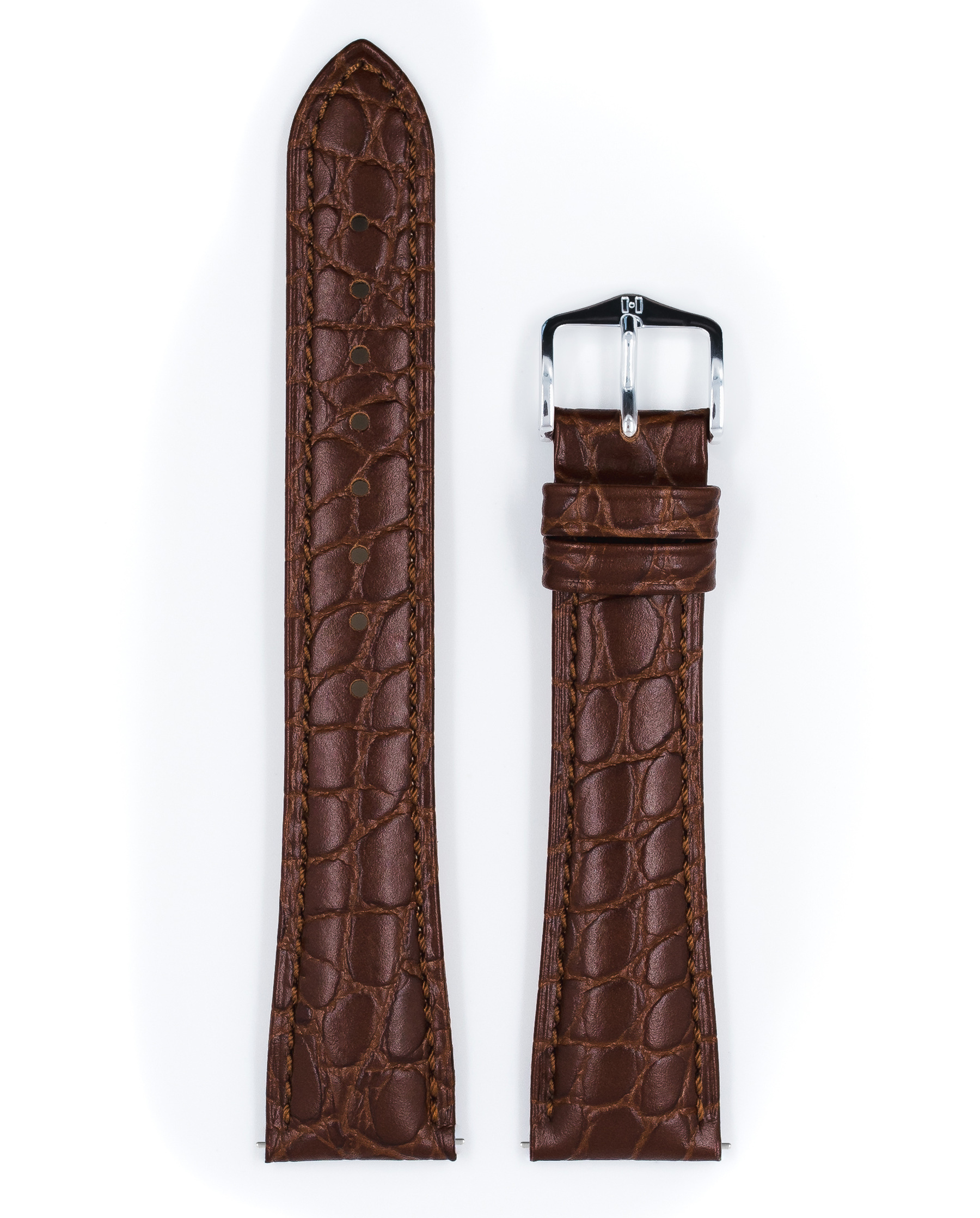 Ремешок Hirsch 20/18, натуральная кожа с тиснением под крокодила, коричниевый, длина 118/78, коллекция Aristocrat