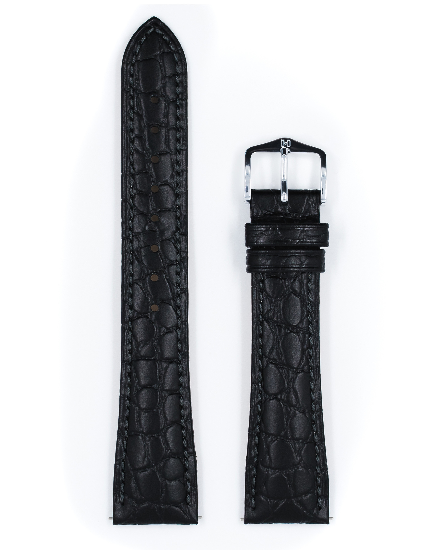 Ремешок Hirsch 22/18, натуральная кожа с тиснением под крокодила, чёрный, коллекция Aristocrat