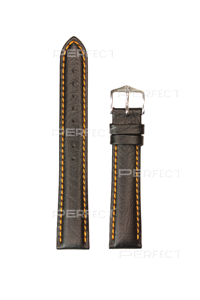 Ремешок Hirsch 18/16, натуральная кожа, чёрный, оранжевая прострочка, длина 118/78, коллекция Jumper