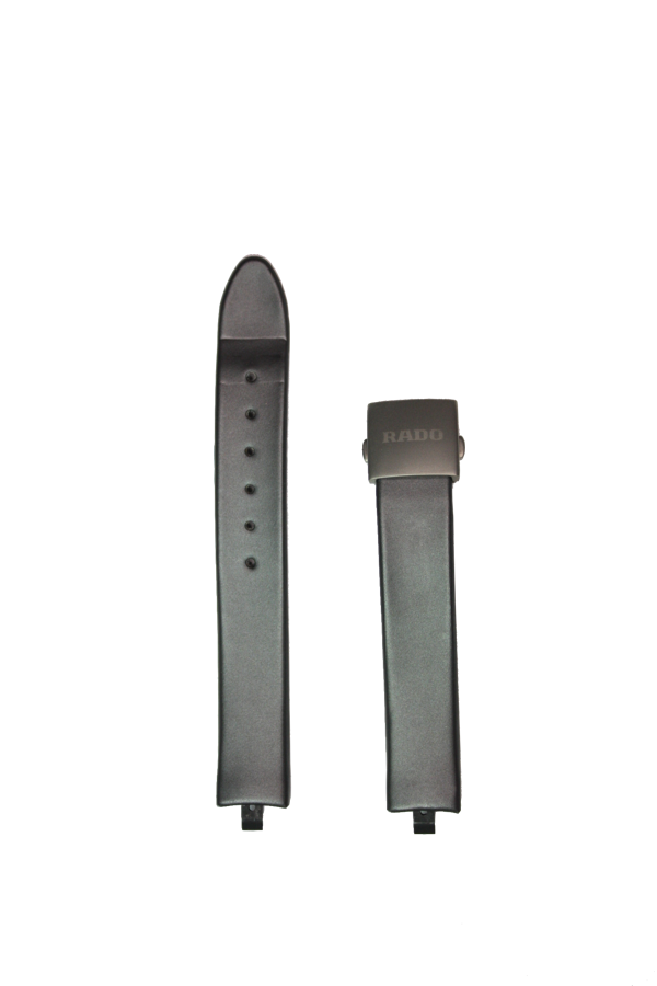 Ремешок Rado 14/15, резиновый, серый, стальная клипса, чёрное PVD