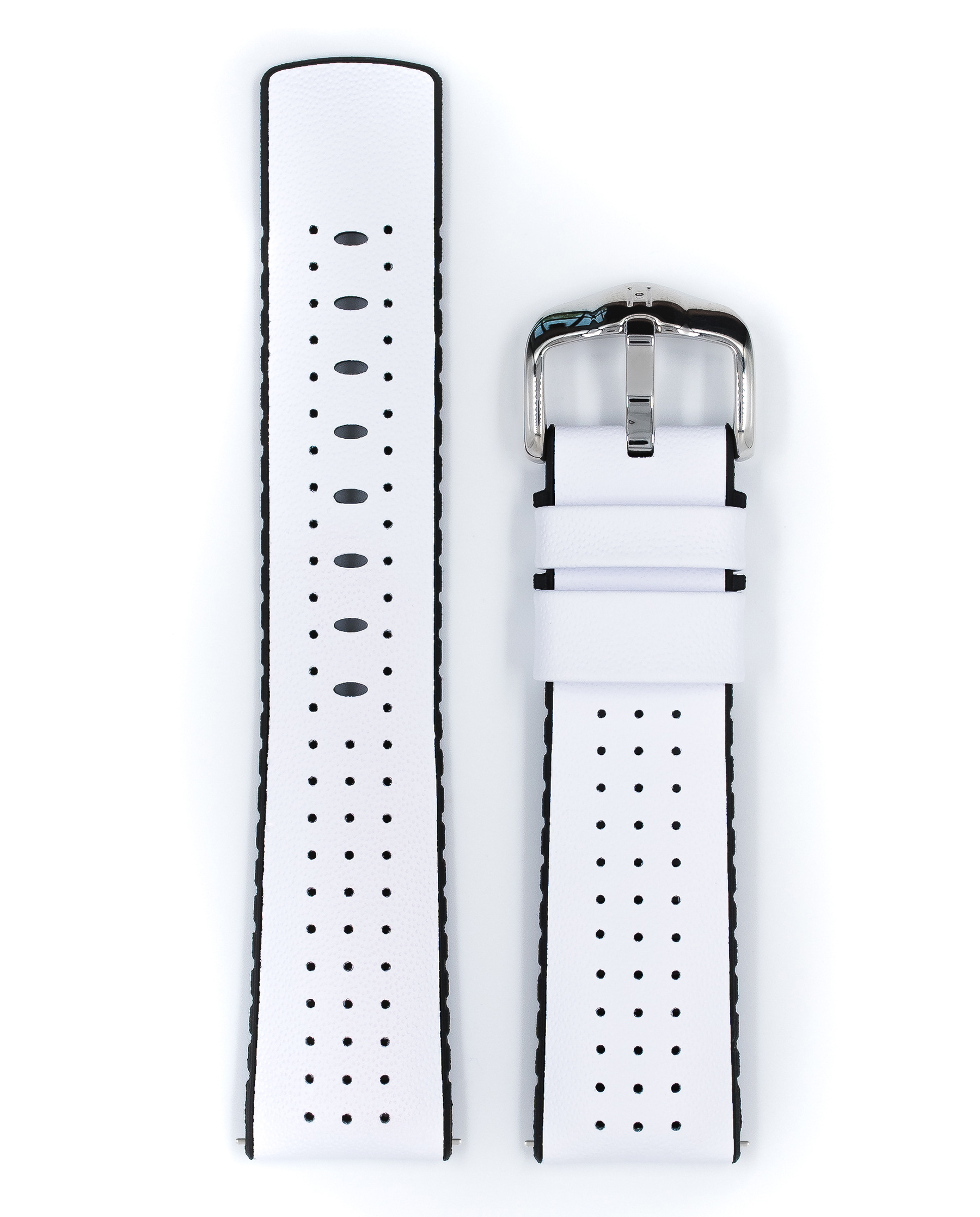 Ремешок Hirsch 20/18, лицевой слой ремешка изготовлен из натуральной белой кожи HIRSCH Monza, подкладка - из премиального каучука, длина 120/80, коллекция Performance Tiger