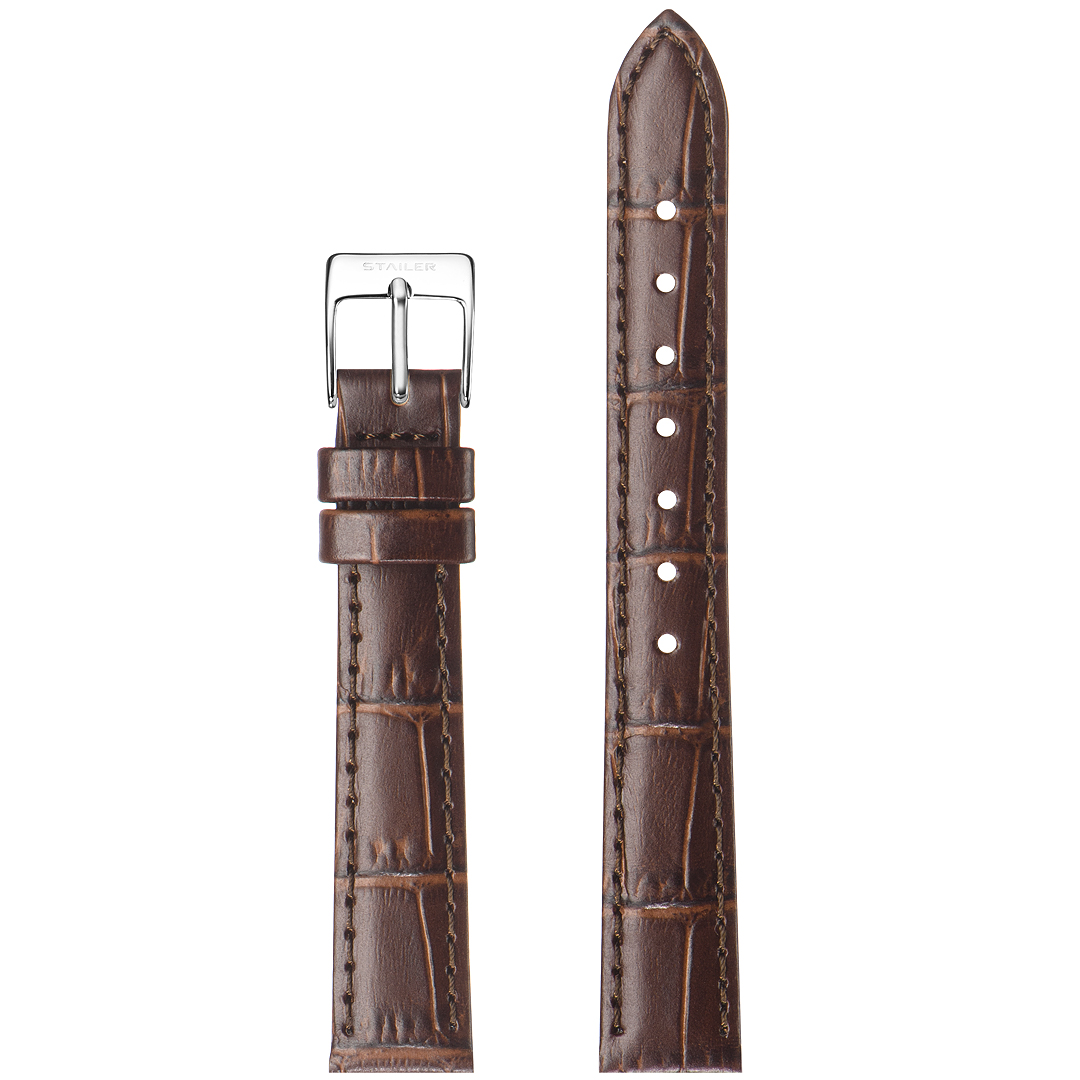 Ремешок Stailer 14/12, натуральная кожа с тиснением под аллигатора, коричневый, длина 105/75, коллекция Original