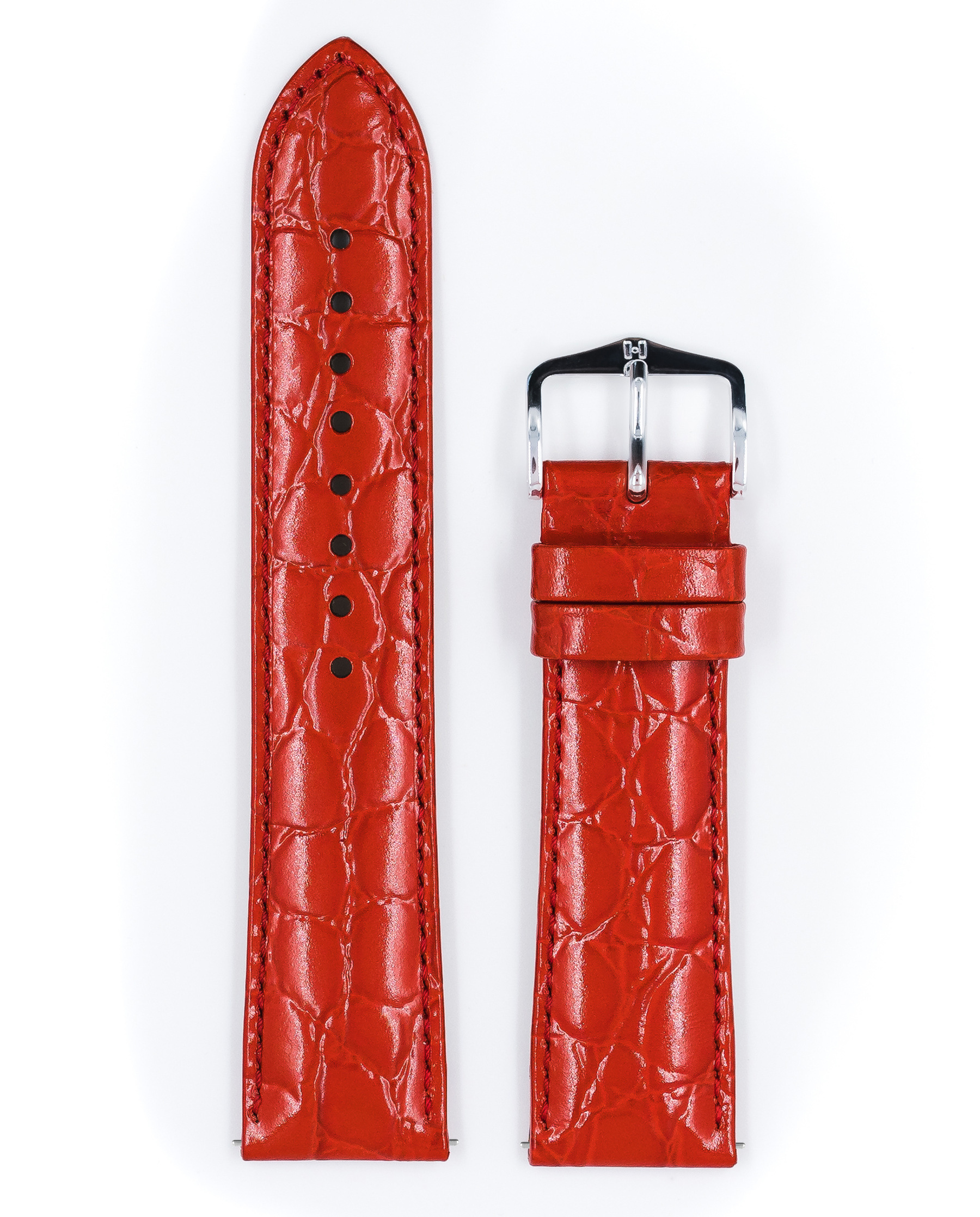 Ремешок Hirsch 20/18, натуральная кожа с тиснением под крокодила, красный, длина 110/70, коллекция Crocograin