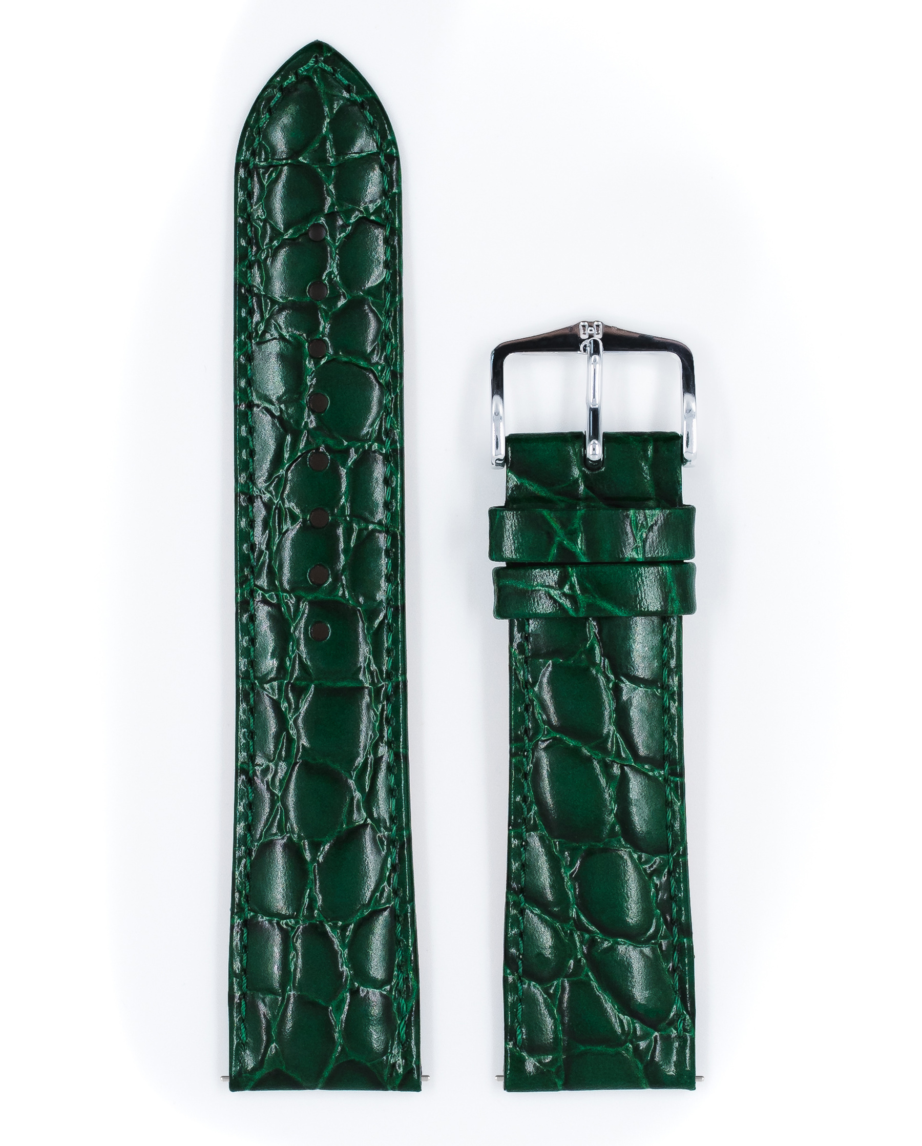 Ремешок Hirsch 14/12, натуральная кожа с тиснением под крокодила, зеленый, коллекция Crocograin