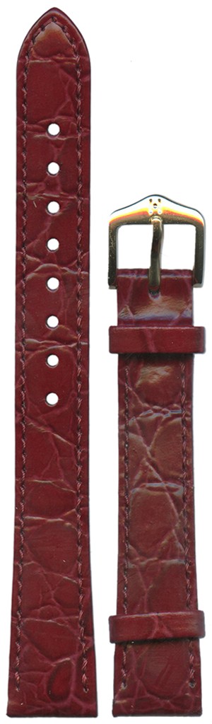 Crocograin, 14/12, Длина M, Бордовый, Телячья кожа, Тиснение под крокодила, Глянцевый, Прошивка тон в тон, Жёлтая пряжка,