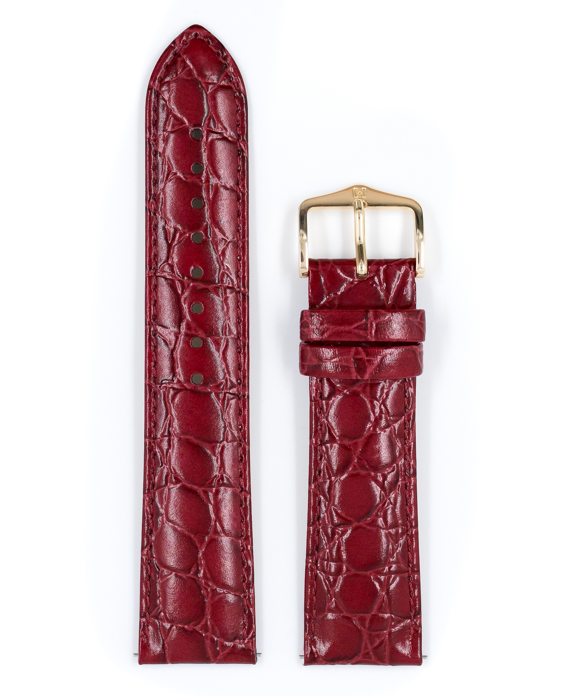 Ремешок Hirsch 17/16, натуральная кожа с тиснением под крокодила, бордовый, коллекция Crocograin