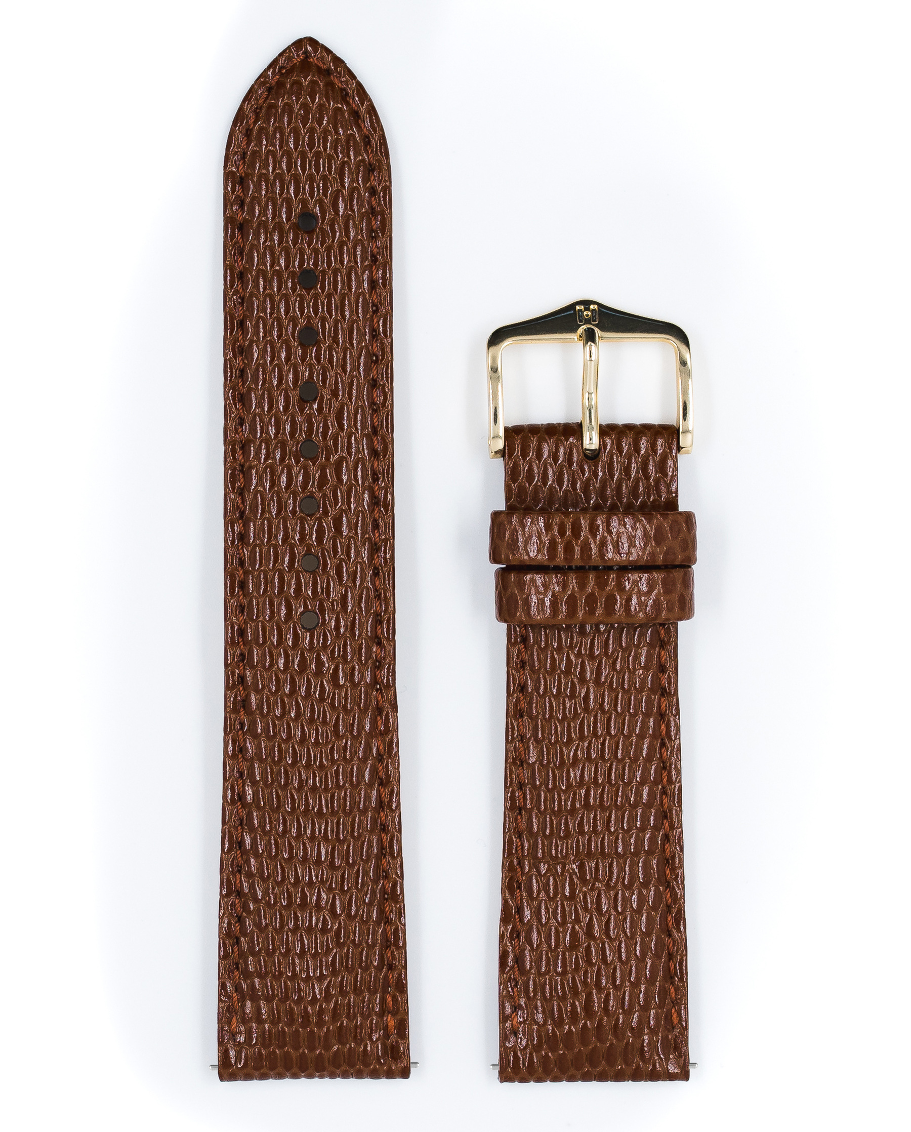 Ремешок Hirsch 20/18, натуральная кожа с тиснением под ящерицу, коричневый, длина 118/78, коллекция Rainbow