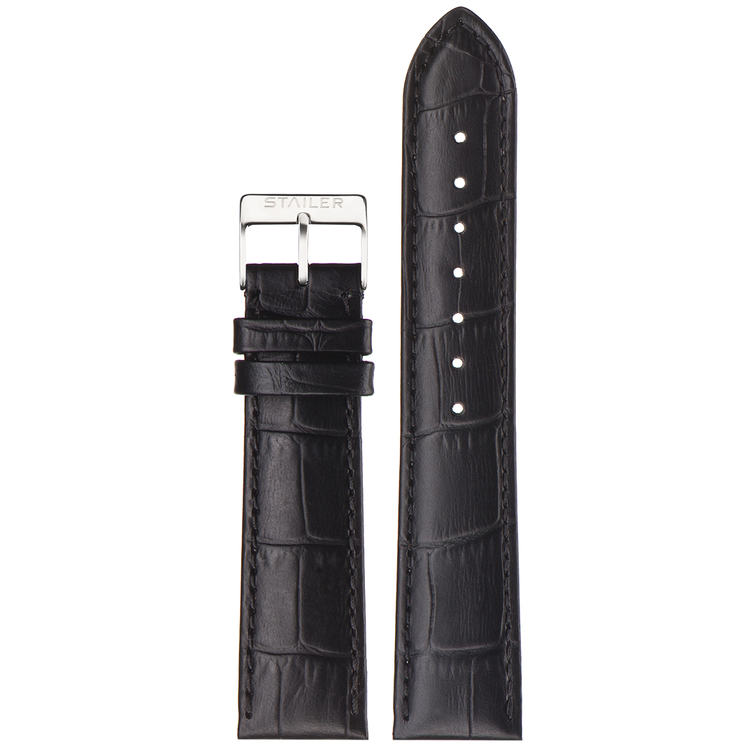 Ремешок Stailer 18/16, натуральная кожа с тиснением под аллигатора, черный, длина 125/85, толщина 3,2 мм., коллекция Original