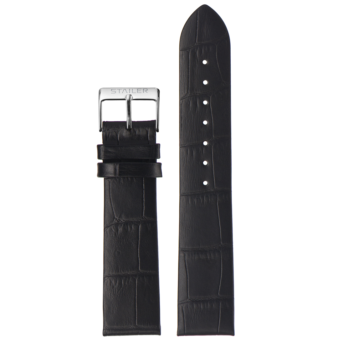 Ремешок Stailer 18/16, натуральная кожа с тиснением под аллигатора, чёрный, длина 115/75, коллекция Original