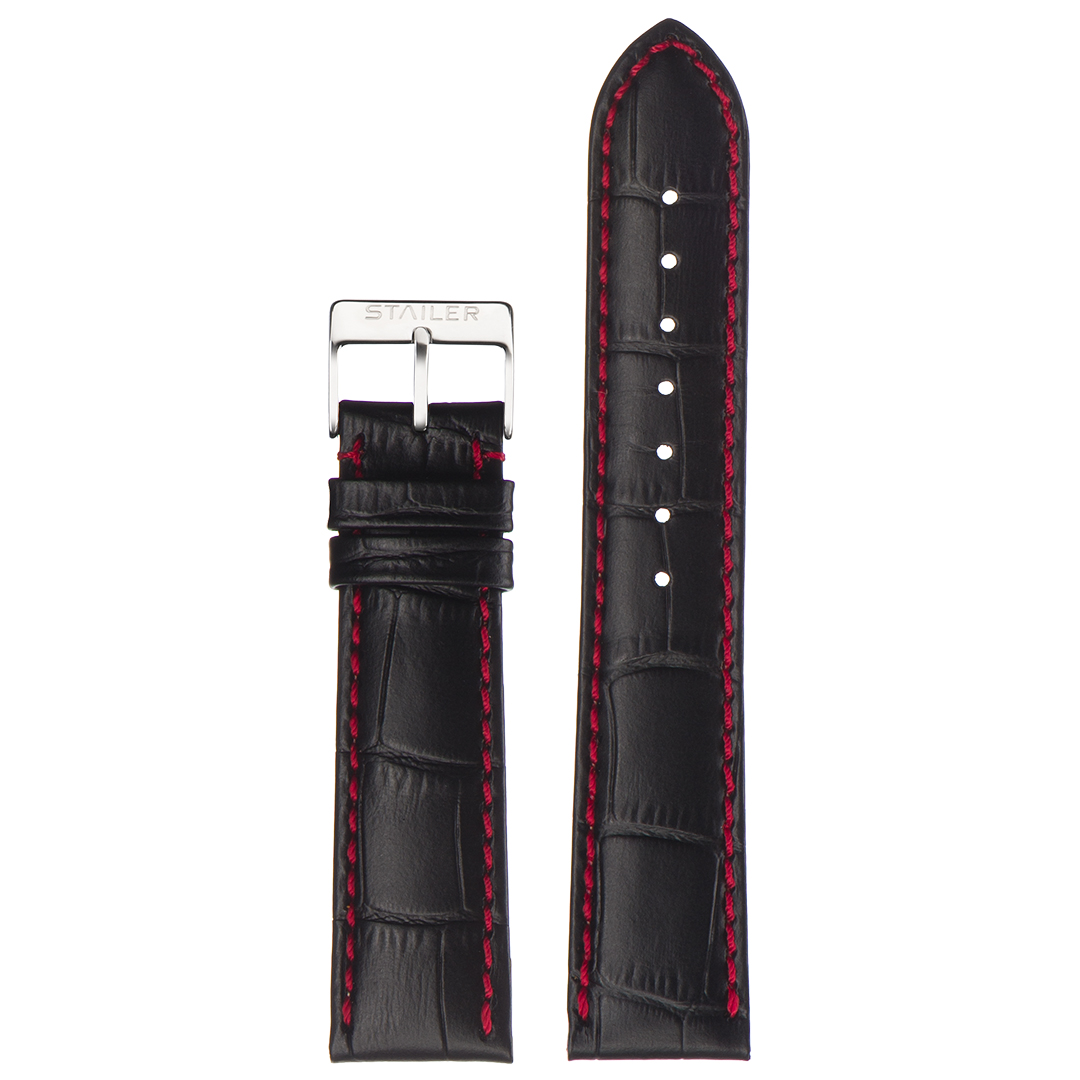 Ремешок Stailer 20/18 натуральная кожа с тиснением под аллигатора, красная прострочка, черный, длина 125/85, коллекция Original