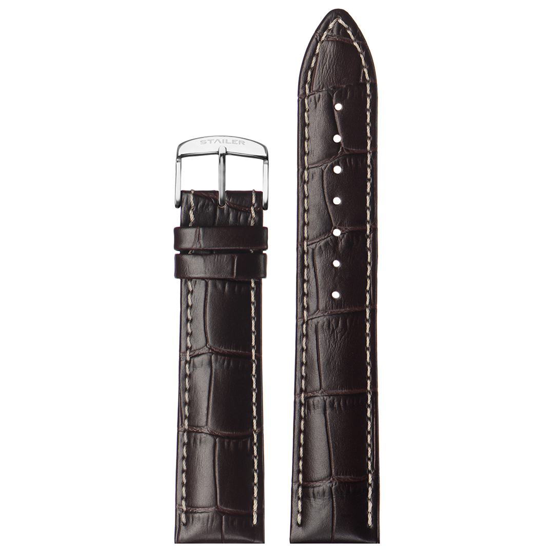 Ремешок Stailer 21/18, натуральная кожа с тиснением под аллигатора, белая прострочка, коричневый, длина 120/80, коллекция Premium