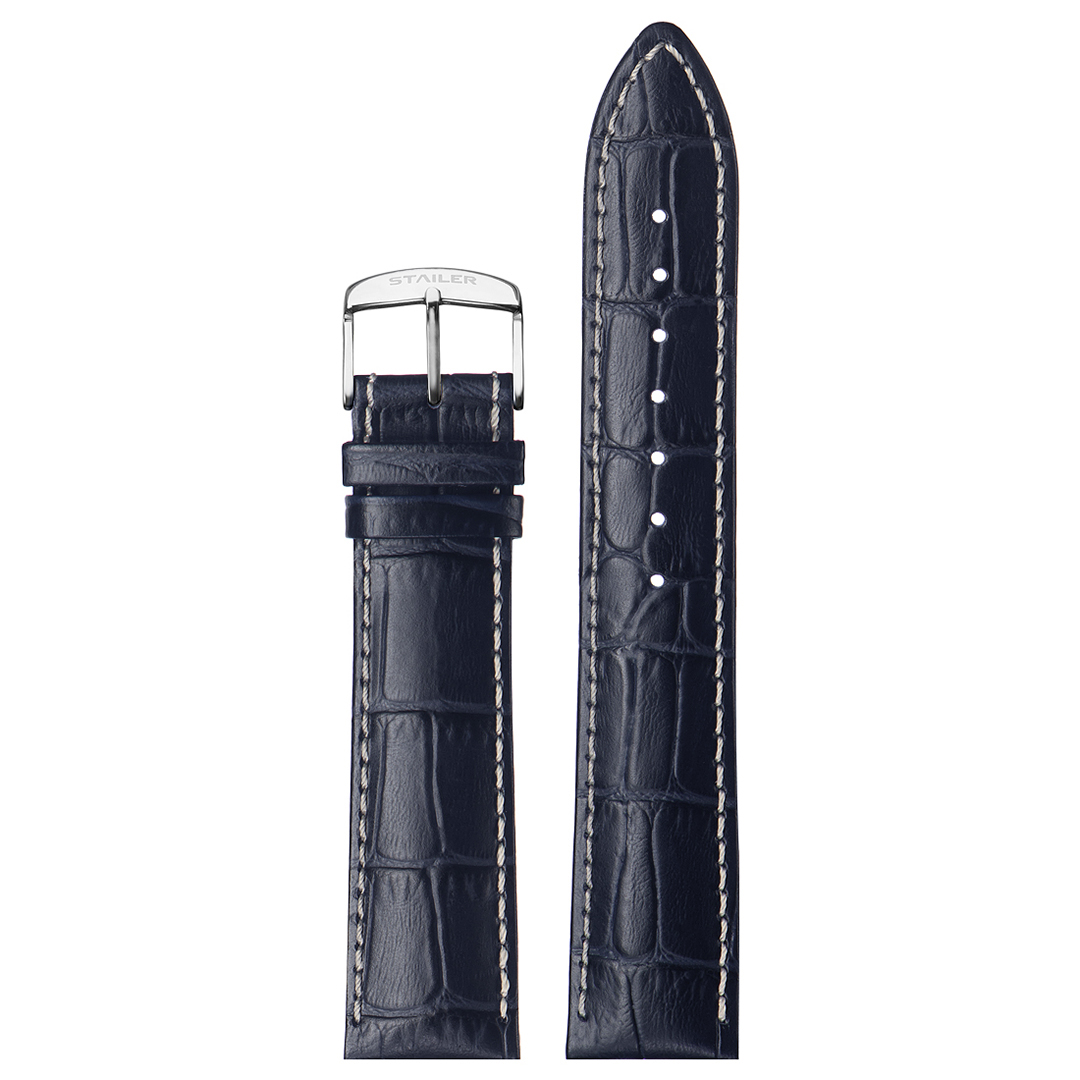 Ремешок Stailer 19/16, верхний слой ремня выполнен из натуральной кожи с тиснением под аллигатора, тёмно-синий, белая прострочка, подкладка из натуральной кожи Anfibio цвета Beige обладает особой мягкостью и износостойкостью, длина 120/80, коллекция Premium Chrono Stailer Premium Chrono