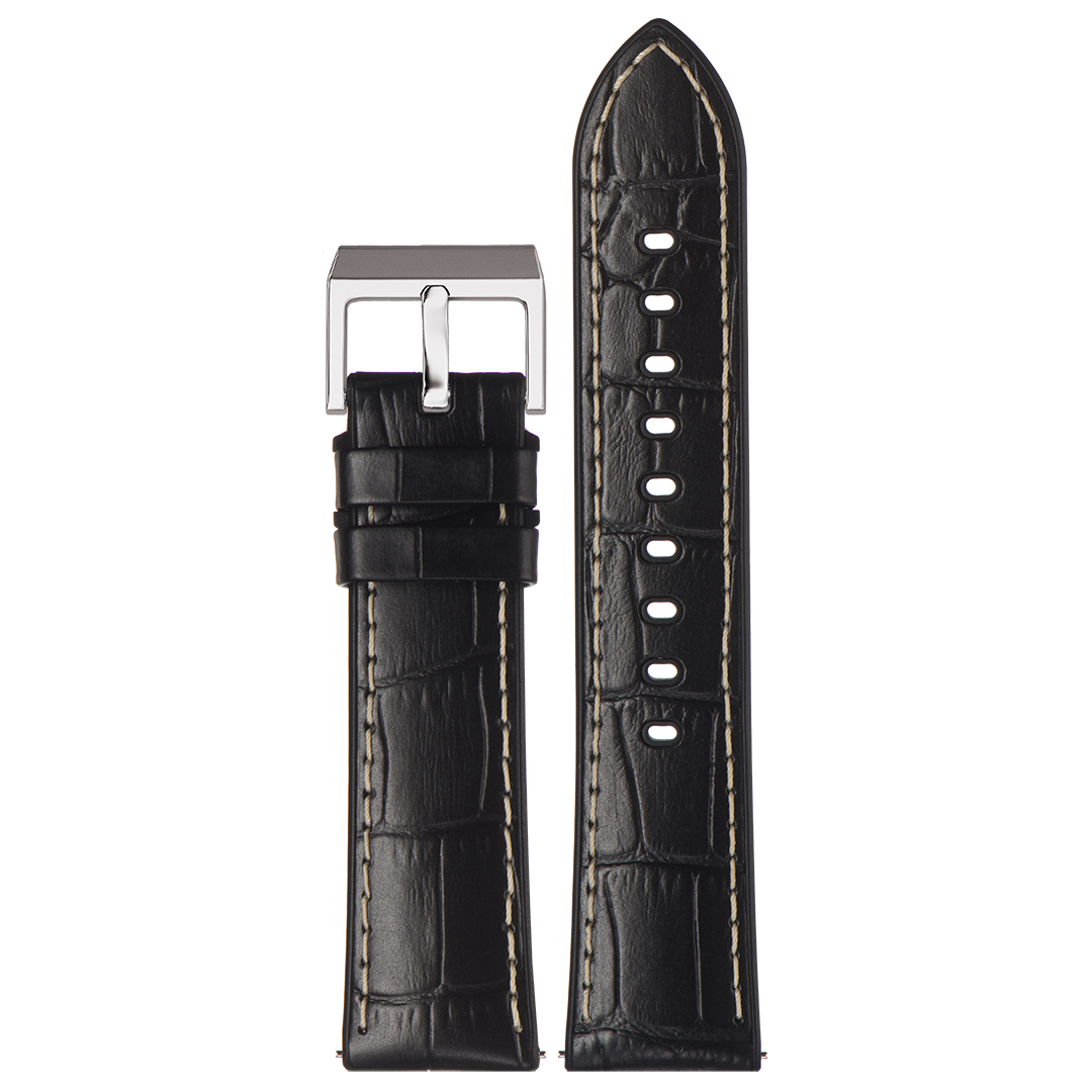 Ремешок Stailer 20/18, верхний слой ремня выполнен из натуральной кожи с тиснением под аллигатора, чёрный, белая прострочка, подкладка из силикона PlasmaTech, крепление "Easy Infix", дополнительные петли из силикона, длина 120/80, коллекция Stailer Premium Max Endurance Sport