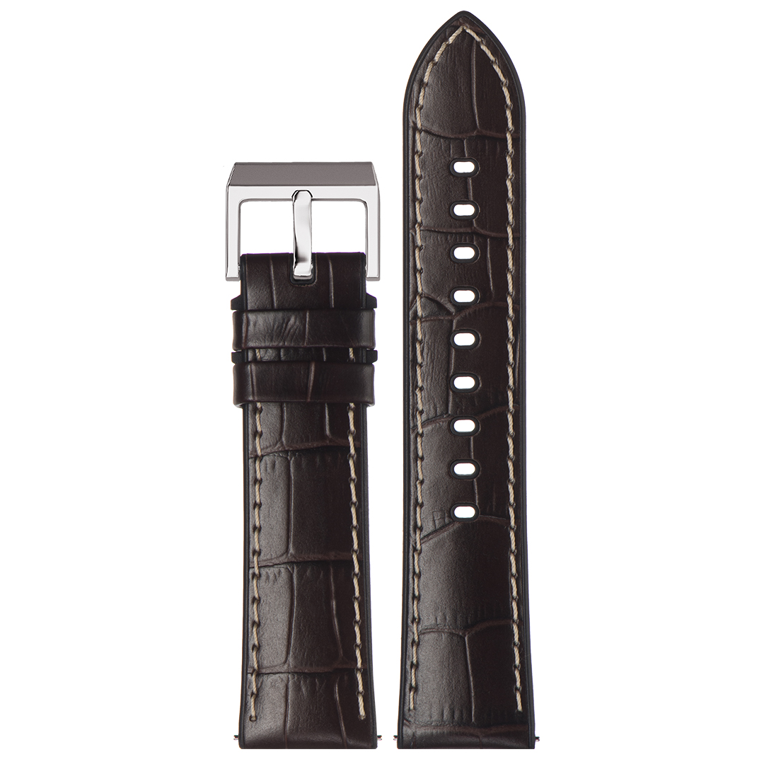 Ремешок Stailer 22/20, верхний слой ремня выполнен из натуральной кожи с тиснением под аллигатора, коричневый, белая прострочка, подкладка из силикона PlasmaTech, крепление "Easy Infix", дополнительные петли из силикона, длина 120/80, коллекция Premium Max Endurance Sport