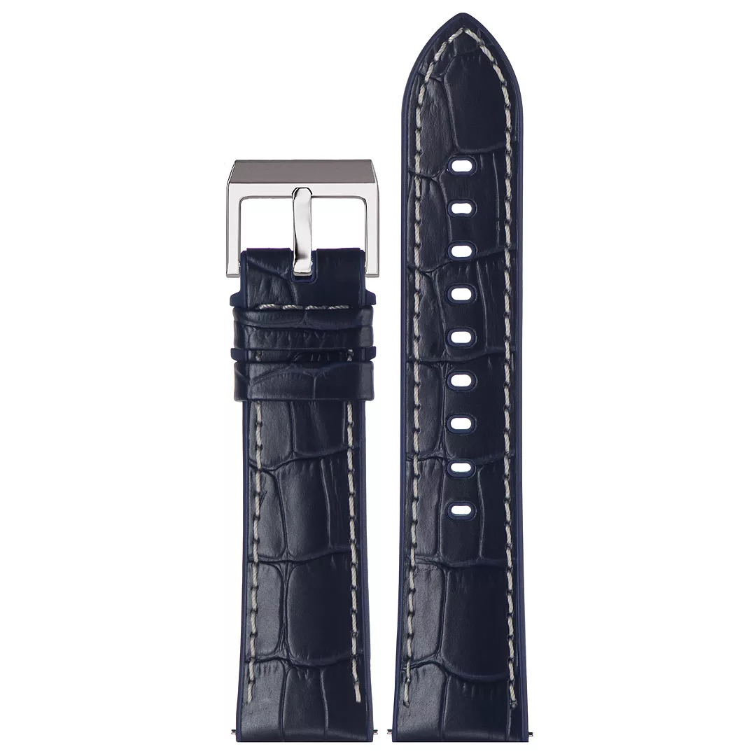 Ремешок Stailer 20/18, верхний слой ремня выполнен из натуральной кожи с тиснением под аллигатора, темно-синий, белая прострочка, подкладка из силикона PlasmaTech, крепление "Easy Infix", дополнительные петли из силикона, длина 120/80, коллекция Premium Max Endurance Sport