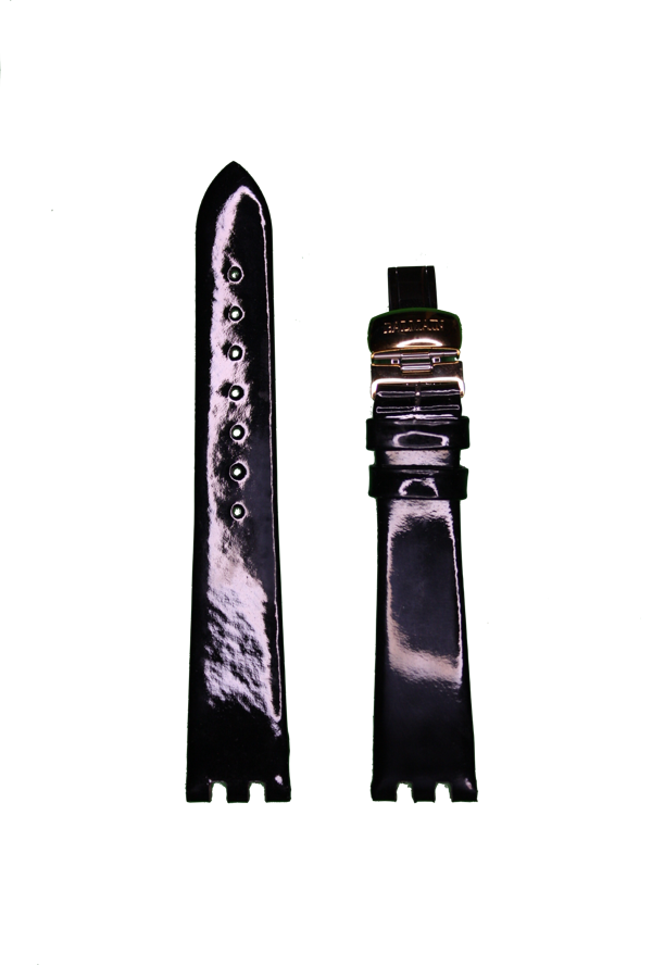 Ремешок Balmain 18/10, натуральная кожа, лаковый, чёрный, жёлтая клипса, длина 115/75