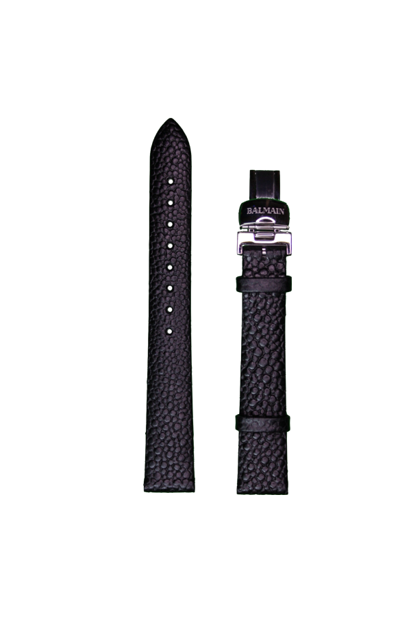 Ремешок Balmain 14/12, натуральная кожа с теснением под ската, чёрный, стальная клипса, длина 105/70