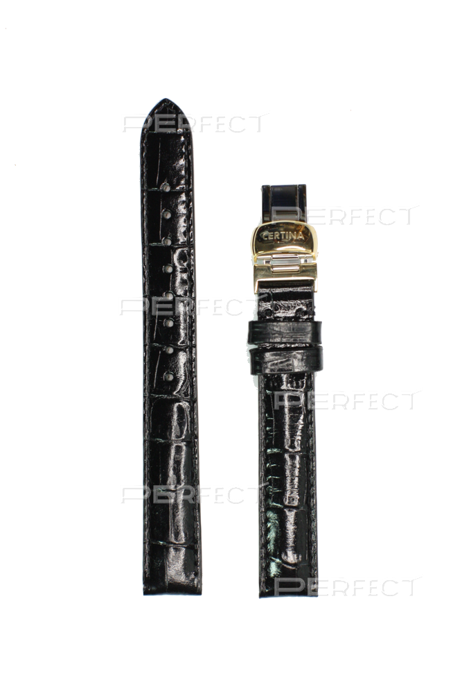 Ремешок Certina 13/12, натуральная кожа с тиснением под аллигатора, чёрный, жёлтая клипса, длина 110/70