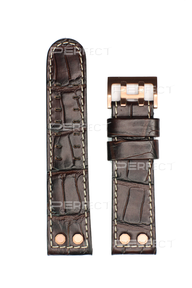 Ремешок Hamilton 24/22, натуральная кожа с тиснением под аллигатора, тёмно-коричниевый