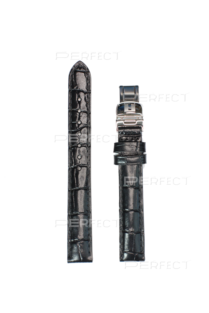Ремешок Tissot 13/12, натуральная кожа с теснением под аллигатора, чёрный, стальная клипса, длина 105/70