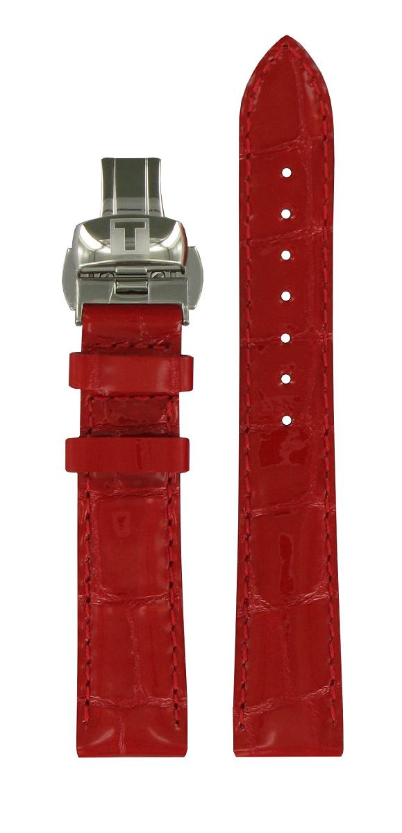 Ремешок Tissot 16/14, натуральная кожа с теснением под аллигатора, красный, длина 105/65