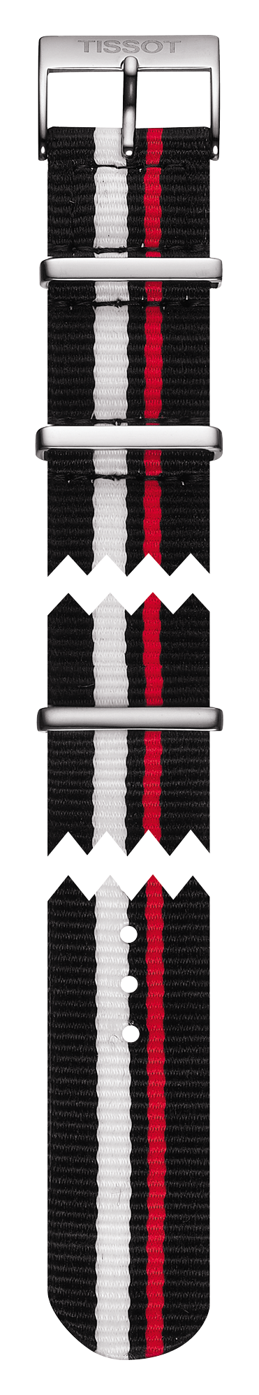 Ремешок Tissot 19/19 NATO, синтетика, чёрный/красный/белый